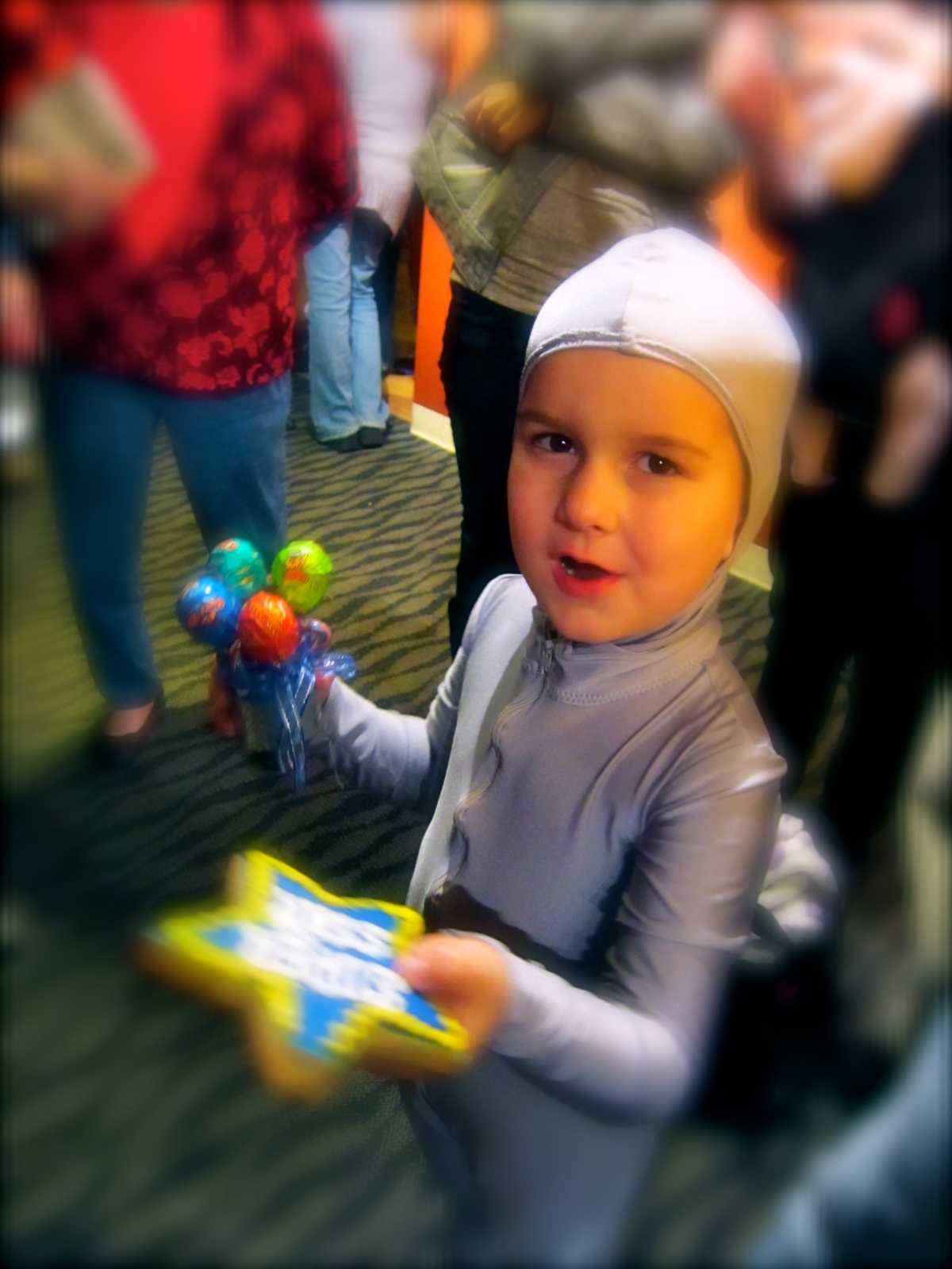 Liam is remarkably talented in performance. He has been dancing pretty much since the day he learned to walk and he memorizes lines from movies, performing them at the drop of a hat. During this particular dance recital, he was an alien. He wore the most hilarious silver body suit that covered his feet and his head, and on his face he wore giant green sunglasses shaped like bug eyes. He wasn't a bit nervous before he went on stage and he was so excited when the show was over! He jumped up and down and was hugging everyone left and right. We brought him treats, which sent him through the roof!